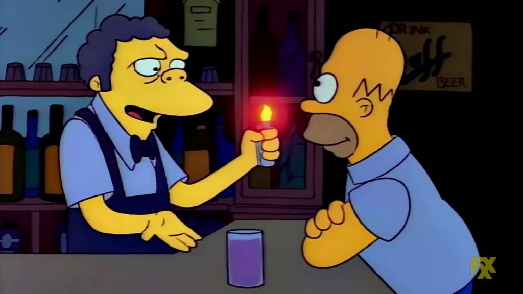 El "fanatismo" de Homero Simpson por el alcohol no parece tener límites. Uno de los casos más recordados es la invención accidental del trago “Llamarada Homero”, que fue luego apropiado por Moe el cantinero y convertido en “Llamarada Moe“.
