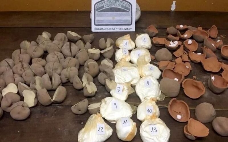 Insólitos e ingeniosos, pueden ser los procedimientos para mover drogas, este domingo se detuvo a un hombre que utilizó papas de cerámica para llevar 1,6 kilos de cocaína