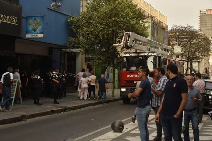 Los transeúntes y los habitúes del edificio sito en San Martín 666, fueron sorprendidos, en la mañana de este martes, cuando una explosión en el séptimo piso incendió  los motores del ascensor.