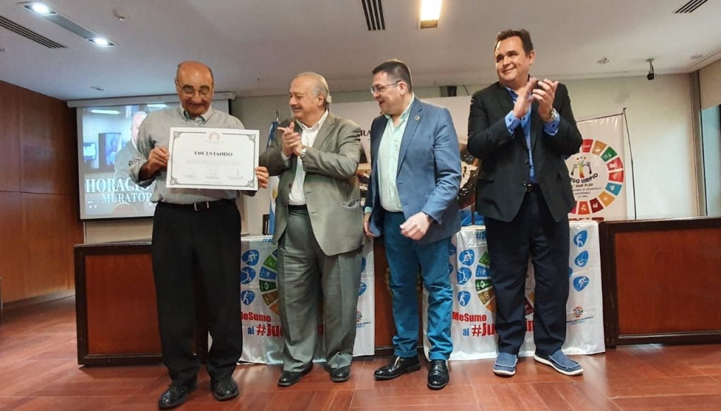 Guillermo Rubino recibió este mediodía el Diploma de manera sorpresiva durante un acto en el cual se distinguía a Horacio Muratore por su trayectoria en FIBA