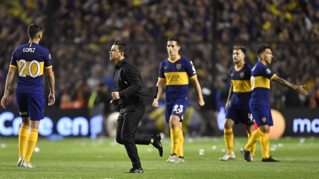 Con el encuentro de ida empatado en 2-2, la serie debía definirse en el Monumental. Sin embargo, tras las agresiones hacia el micro de Boca en las inmediaciones del estadio, el partido tuvo que ser trasladado a España.