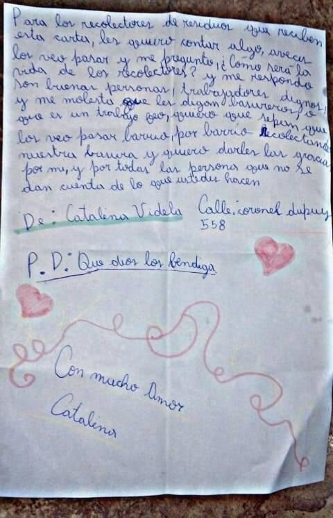 La carta de una pequeña sanjuanina conmovió a los recolectores de residuos