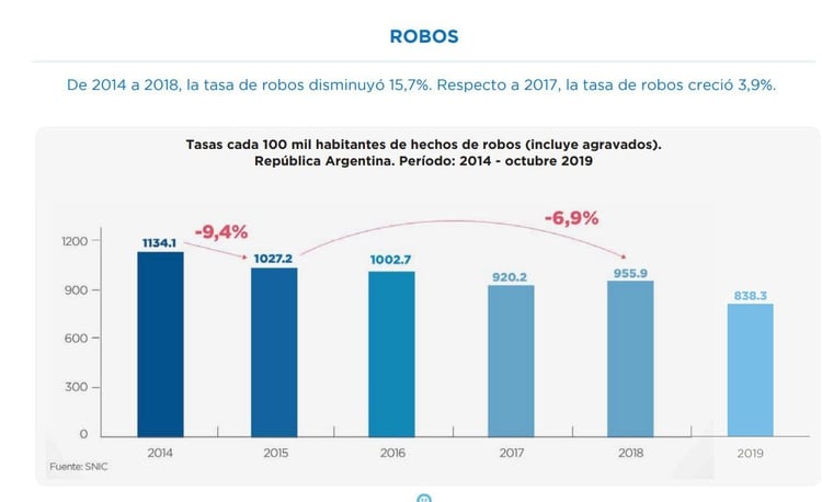 Las estadísticas insignia de la gestión Bullrich: baja en robos y polvo incautado.