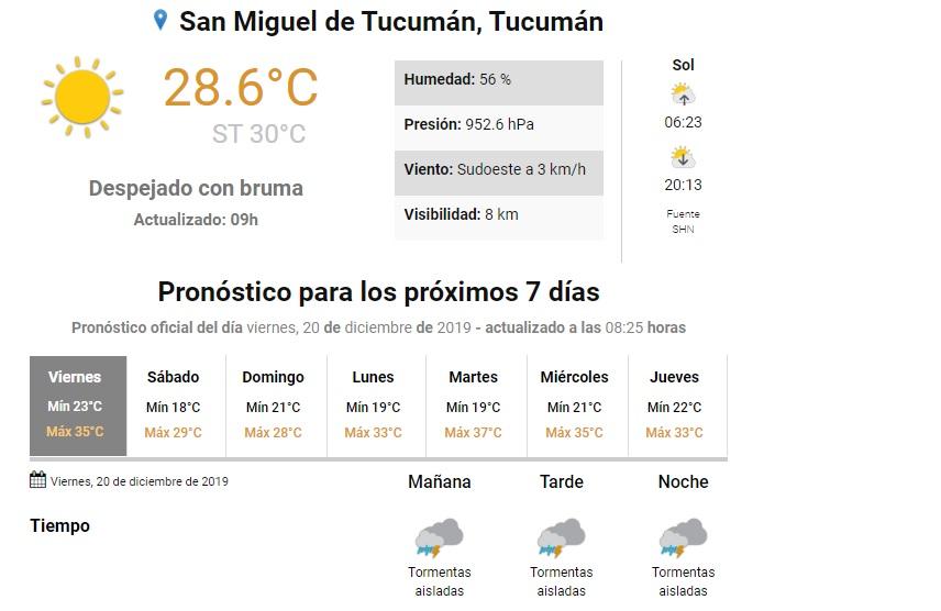 EL TIEMPO EN TUCUMAN