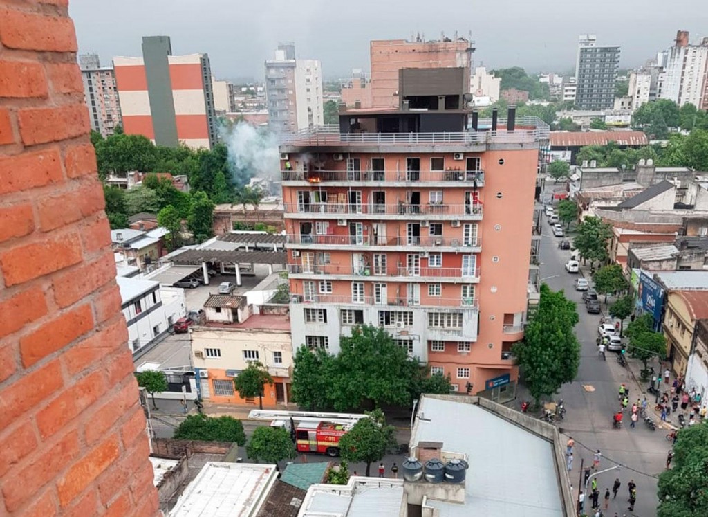 Fueron minutos que parecieron horas, en un edificio ubicado en la esquina de calles Alberdi y San Lorenzo. Por causas que se desconocen, un departamento del último piso de la propiedad ardió en llamas.