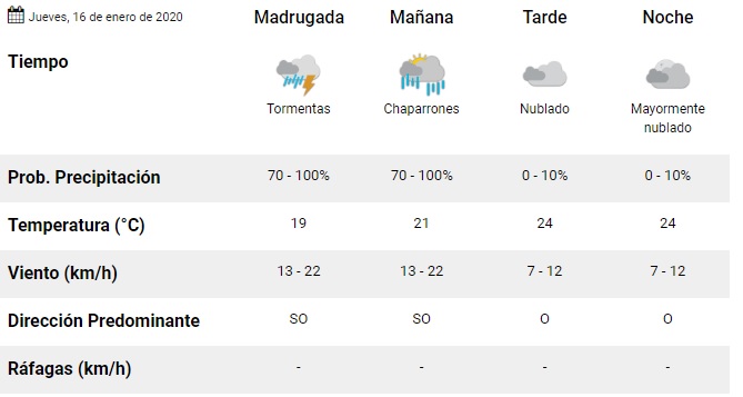 Para la mañana del jueves, se anuncian tormentas y chaparrones. El tiempo mejoraría recién en horas de la tarde y la noche.