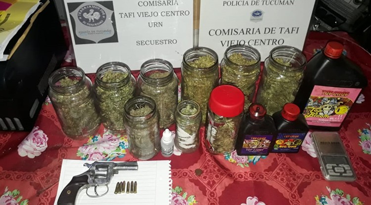 Los efectivos, en uno de los allanamientos realizado donde vive “Iván”, hallaron drogas por lo que dieron intervención al personal de la DIGEDROP. Secuestraron siete frascos con 228 gramos de marihuana picada, tres fertilizantes, una balanza, un indoor de cultivo interno (utilizado para acelerar el crecimiento, equipado con luz y calor artificial) y siete macetas con plantas de marihuana. También encontraron un revólver calibre 22.