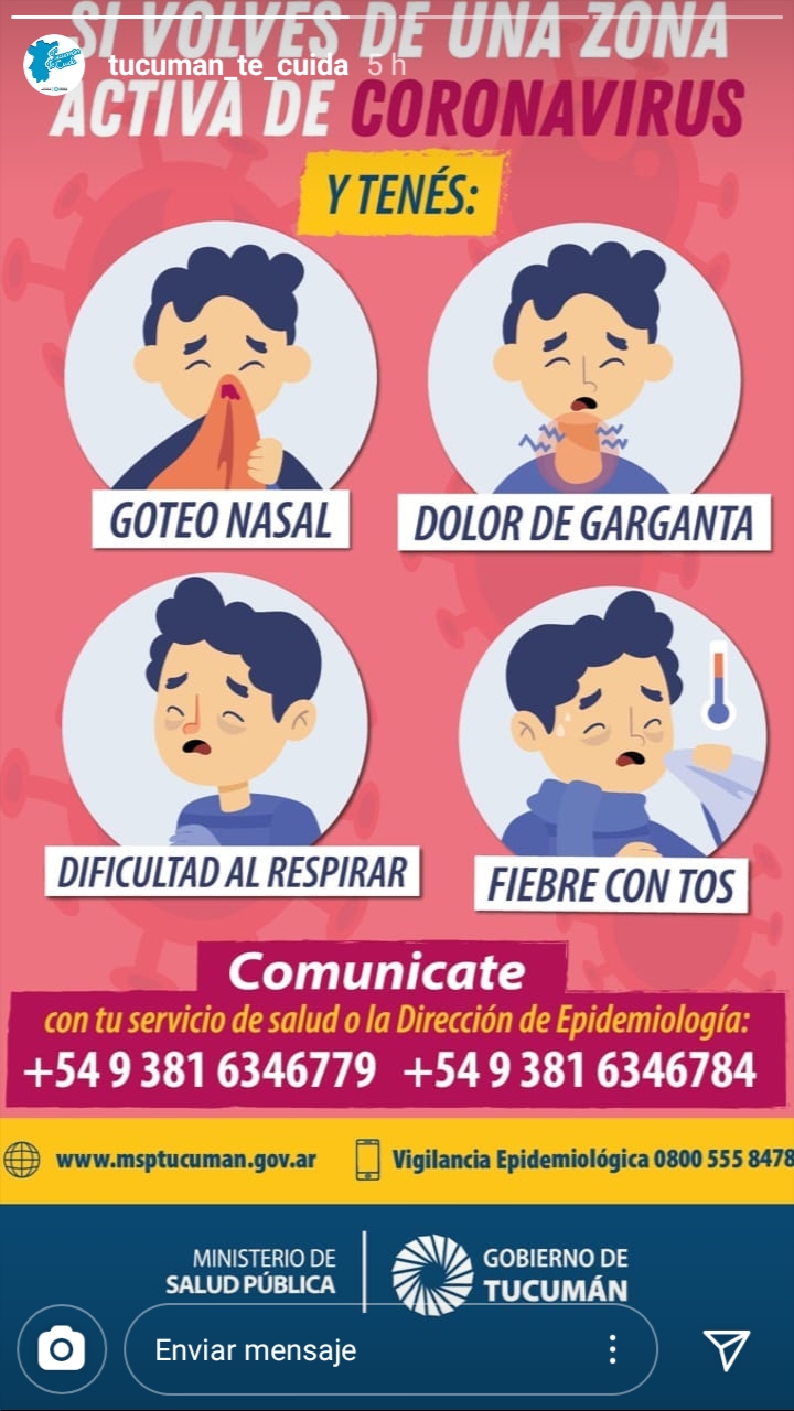 En la página web del Ministerio de Salud (msptucuman.gov.ar), también se puede obtener información. Allí se especifican las recomendaciones para la población en general y las precauciones que deberían tomar los para pacientes con síntomas leves de influenza (gripe) o coronavirus.