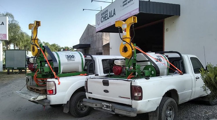 Estas máquinas forman parte del equipamiento con que cuenta la Dirección de Agricultura para las tareas de control de la plaga de langosta sudamericana y son perfectamente adaptables para controlar plagas urbanas. En este marco, la capacidad de control del mosquito Aedes Aegypti en espacios públicos se ve reforzada mediante la interacción de los distintos Ministerios provinciales que cuentan con equipamiento de estas características.