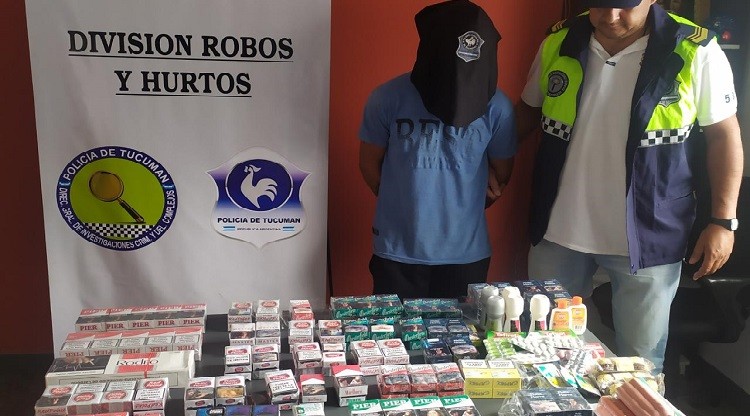 Jorge Dib, Director General de Investigaciones de la Policía de Tucumán, explicó: “Mientras el personal de la División Robos y Hurtos realizaba recorridos preventivos en la zona, la dueña del kiosco se encontraba en Avenida San Ramón y calle Salas y Valdez pidiendo ayuda. Ahí explicó que este joven había entrado a su casa por el techo y tras romperlo ingresó al local comercial y escapó con paquetes de cigarrillos, desodorantes, bebidas alcohólicas, salchichas y otras mercaderías. Rápidamente realizaron una investigación y lograron dar con èl cuándo escapaba con la mercancía que llevaba en una bolsa negra de consorcio”.