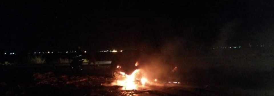 Personal policial, bomberos voluntarios y patrulla urbana de ciudad Alberdi trabajaron en el lugar donde se pudo determinar que el vehículo Volkswagen Gol impactó contra un montículo de tierra ubicado en medio de la calzada antes de incendiarse completamente.