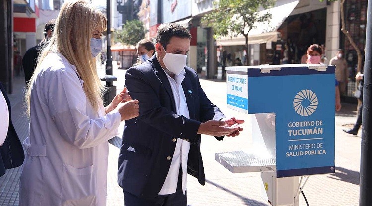 Rossana Chahla, ministra de Salud Pública, señaló: “Que las personas tengan un lugar dónde ponerse alcohol o higienizarse es una gran aporte, ya que la zona céntrica es un lugar de mucho tránsito y no siempre contamos con alcohol en gel con nosotros”.