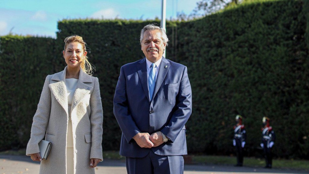 El presidente Alberto Fernández encabezó este lunes, junto a la primera dama Fabiola Yáñez, el izamiento de la bandera nacional por el aniversario de los 210 años de la Revolución de Mayo y la conformación del gobierno patrio, en la residencia de Olivos.