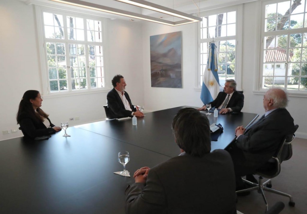 En la Quinta de Olivos y junto al ministro de Salud, Ginés González García, Fernández habló con Fernando Goldbaum, investigador superior del CONICET y director científico de la empresa biotecnológica INMUNOVA, también con el director general de la empresa Linus Spatz y la bioquímica Mariana Colonna.