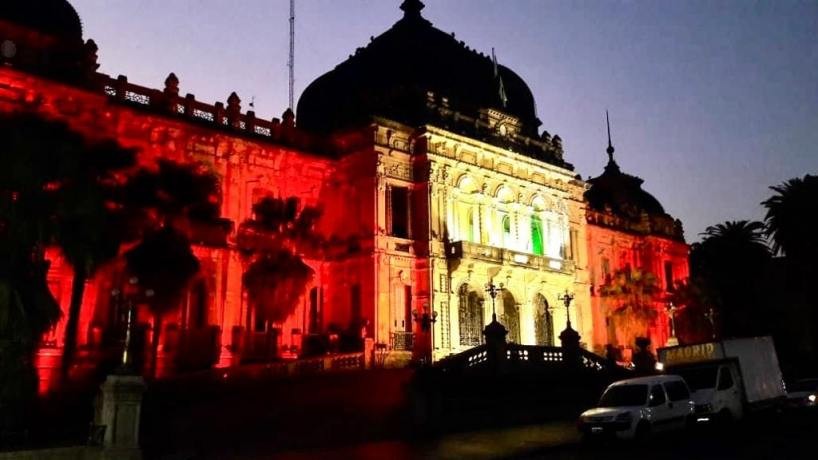 Durante el anochecer de este sábado, los tucumanos se sorprendieron ante una extraña imagen la Casa de Gobierno provincial. Sucede que una vez que se encendieron las luces que decoran la sede gubernamental, la fachada quedó completamente teñida de rojo y blanco.