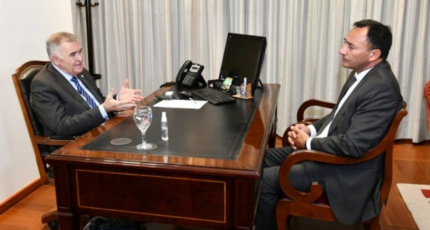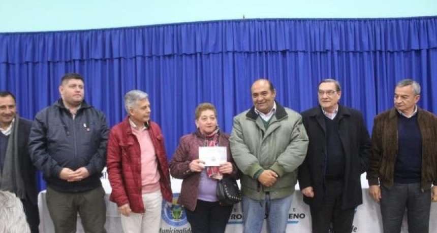 El ministro de Desarrollo Productivo, Álvaro Simón Padrós, junto al intendente, Roberto Moreno y el secretario de Coordinación y Control de Gestión, Eduardo Castro, presidieron el acto que beneficiará a productores tranqueños