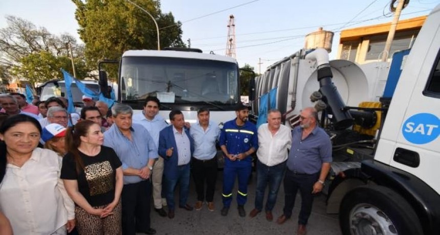 El gobierno entregó tres motocicletas para agentes municipales, una camioneta de unidad de rescate para Defensa Civil, una retroexcavadora, un camión con batea y una autobomba