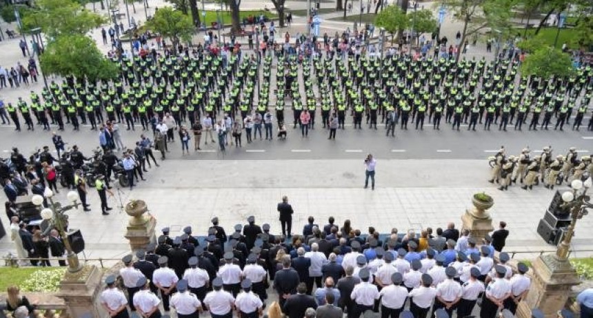 El gobernador Osvaldo Jaldo y el ministro de Seguridad Eugenio Agüero Gamboa encabezaron el acto en la explanada de Casa de Gobierno