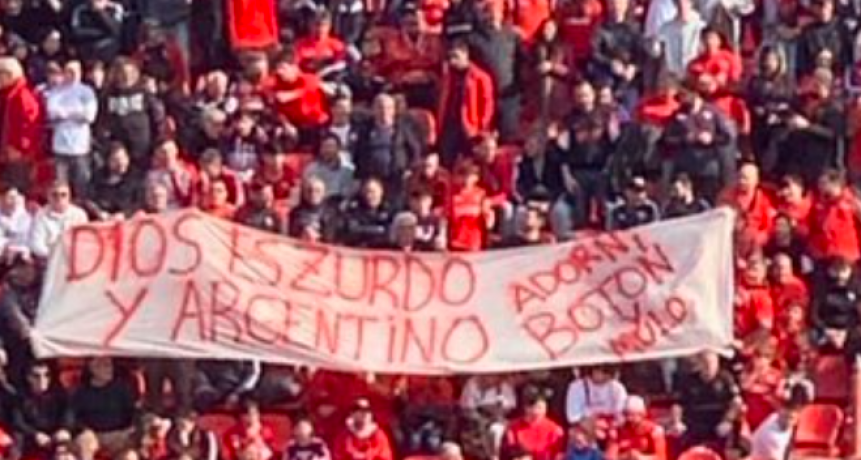 El vocero presidencial, nombre varios íconos del deporte en el Día del Zurdo, pero se olvidó de Diego. Los hinchas del rojo le mandaron un mensaje con una bandera.