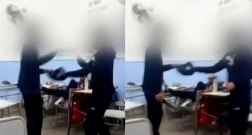 En las imágenes se observa a uno de los estudiantes con el arma blanca en la mano. El padre de la víctima contó que su hijo no fue al colegio y que no es la primera vez que sucede algo así.