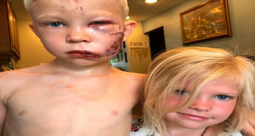Bridger, de seis años, enfrentó a la mascota de sus vecinos y sufrió varias mordidas en la cara, pero pudo rescatar a la pequeña