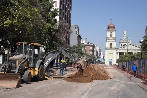 Se debe a los trabajos de revalorización de la plaza Independencia, ya que continúan las obras en Laprida primera cuadra y está cortado el tránsito