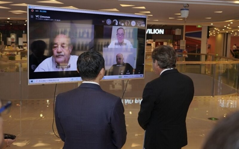 El embajador, Luis María Kreckler, desde el Pabellón Argentino de Importaciones ubicado en la localidad Hongqiao donde arribaron recientemente los limones nacionales, el pasado 17 de agosto, mantuvo un videoconferencia con el ministro de Producción de la Provincia de Tucumán, Juan Luis Fernández, el subsecretario para la Promoción de las Inversiones y el Comercio, Pablo Sivori, el presidente de la Asociación Citrícola del Noroeste Argentino (ANCOA), Pablo Padilla, y representantes de las dos empresas argentinas exportadoras, Citromax y San Miguel.
