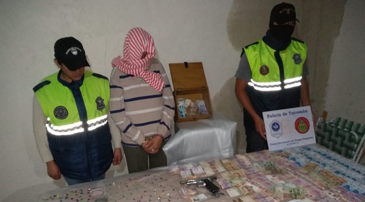 Personal de la División Delitos contra la Propiedad de la Policía de Tucumán, realizó un allanamiento en Villa 9 de Julio, donde se secuestraron sustancias prohibidas, un arma de fuego, más de $160.000, y se aprehendió a una mujer.