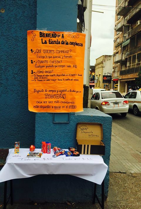 El proyecto consta de dos kioscos en los que la gente puede comprar y pagar los productos que quieran sin ningún tipo de control. Ambos espacios fueron abiertos en la sede de la institución (Laprida 464), uno en el interior y otro en el exterior del establecimiento.