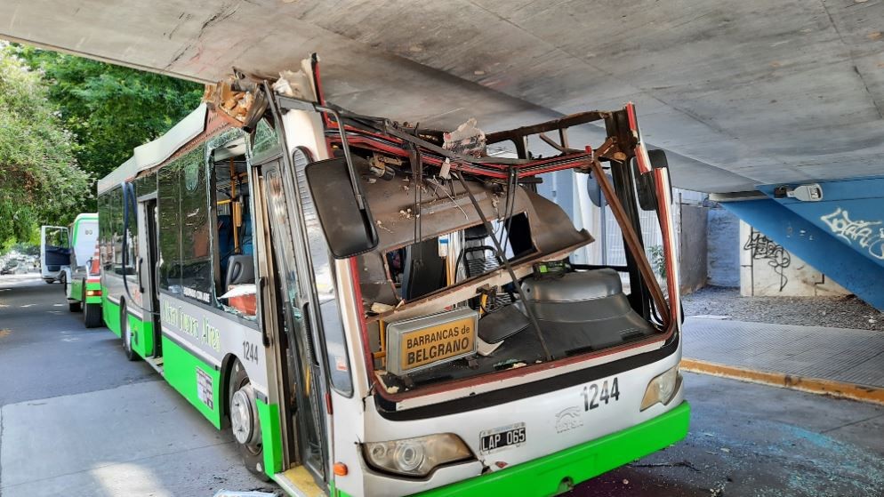 Sucedió este mediodía en Buenos Aires, donde el colectivo de la línea 114 chocó contra el túnel del Viaducto Mitre de Belgrano