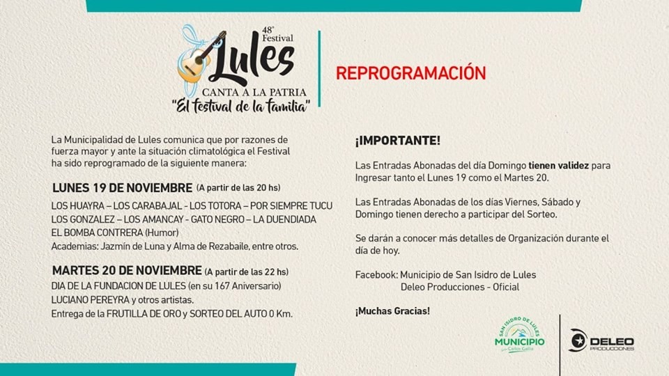 Tras la tormenta: El Festival de Lules se reprograma