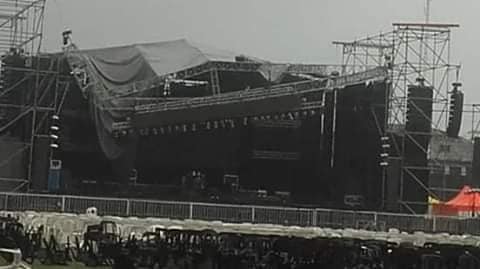 El fuerte viento hizo que incline parte del techo del escenario y se pierdan elementos eléctricos del sonido y las luces, lo que obligó a que se suspendiera la jornada del sábado, y se reprograme la cartelera.
