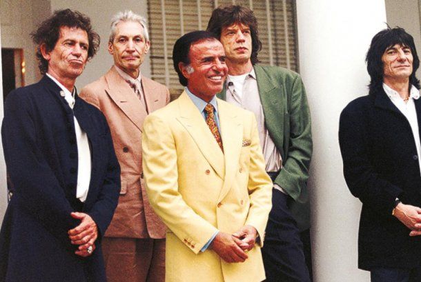 El ex presidente tuvo una relación muy cercana con Susana Giménez, pero también quiso conocer a figuras del show business internacional. Así, en 1995 posó con los Rolling Stones cuando la banda vino a Argentina a tocar.