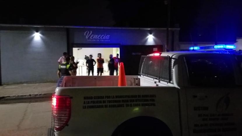 Por un lado, dando cumplimiento a lo dispuesto por la Jefatura de Policía por orden del Ministerio de Seguridad y disposiciones del COE, personal de la Unidad Regional Sur a cargo de Servando Burgos, se presentó este domingo cerca de las 21.30 en un salón de fiestas del Barrio Independencia de la ciudad de Aguilares tras recibir el aviso de que se desarrollaba una fiesta con una gran cantidad de personas.