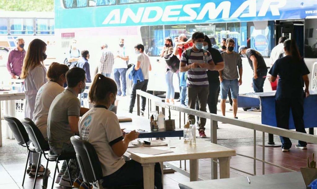 A su vez, de los pasajeros que bajan del micro, se selecciona entre un 10 y 20 por ciento al cual se le realiza un testeo, un hisopado nasofaríngeo. Especialmente son elegidos aquellos que vienen de zonas de precedencia más álgida como la costa argentina o zonas turísticas.