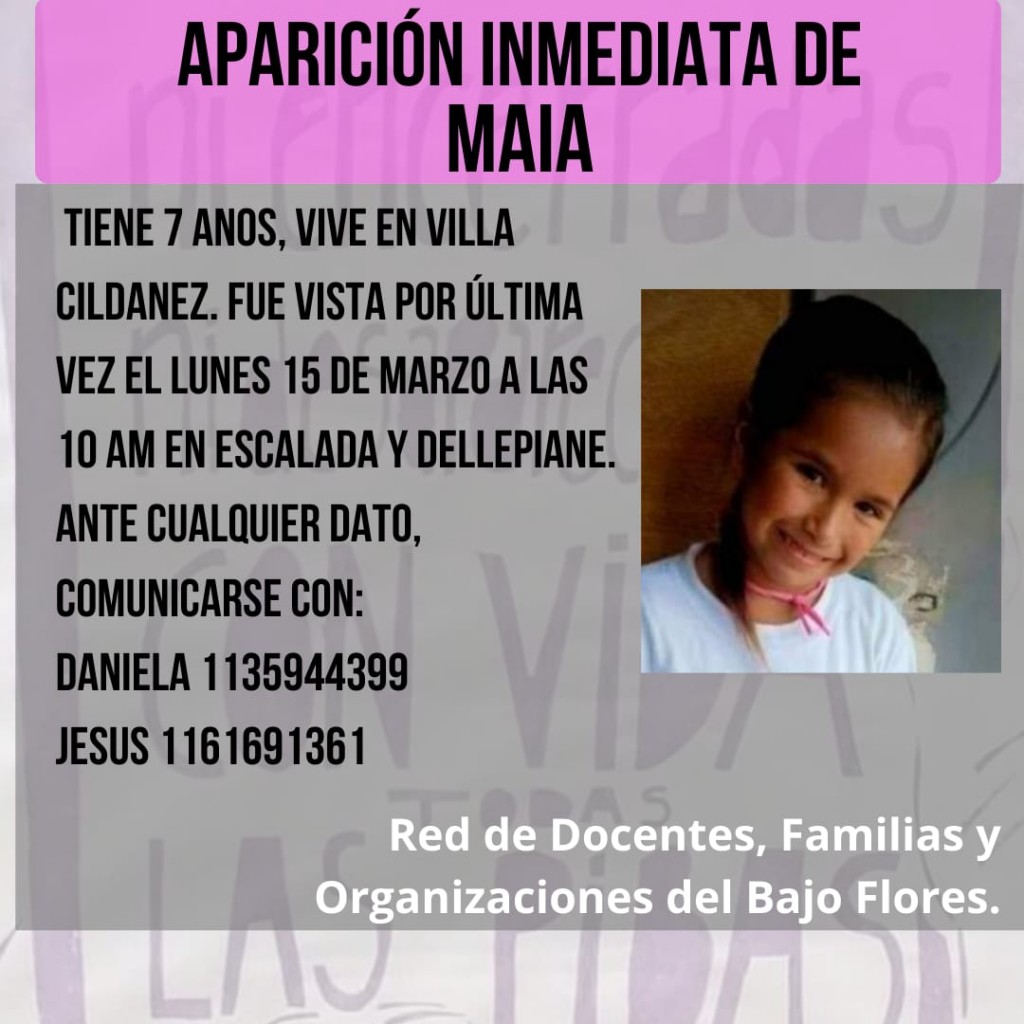Mientras continúa la intensa búsqueda de Maia, la nena de 7 años que fue raptada en la Autopista Dellepiane, este martes por la noche fue detenido el primo del principal sospechoso del presunto secuestro.