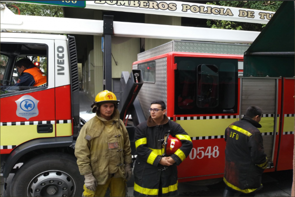 En relación al procedimiento para apagar el fuego, precisó: "mi compañero y yo accedimos a agarrar el matafuego y a empezar a tirar por donde salía el humo. Inmediatamente se evacuó el lugar y se comenzó a proceder con la policía y los bomberos".