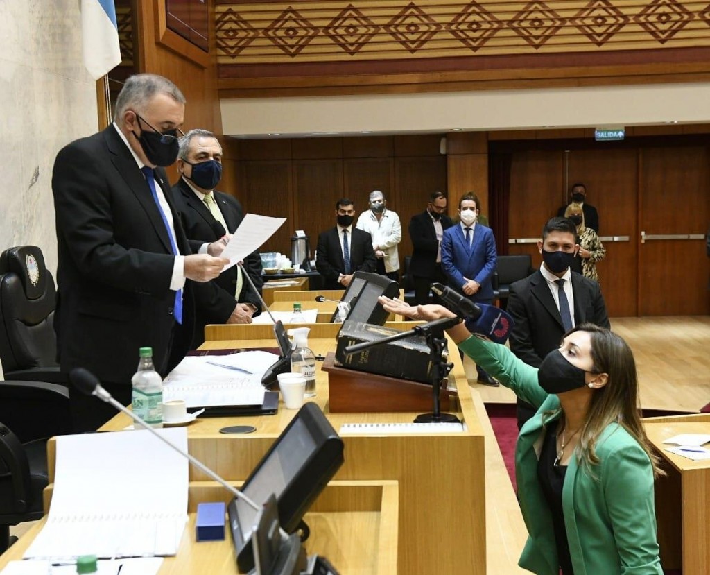 Esta mañana, tras el inicio de la sesión en la Cámara provincial, prestó juramento como nueva legisladora la dirigente del este Maia Vanesa Martínez, con lo que el cuerpo colegiado volvió a completarse con sus 49 representantes.