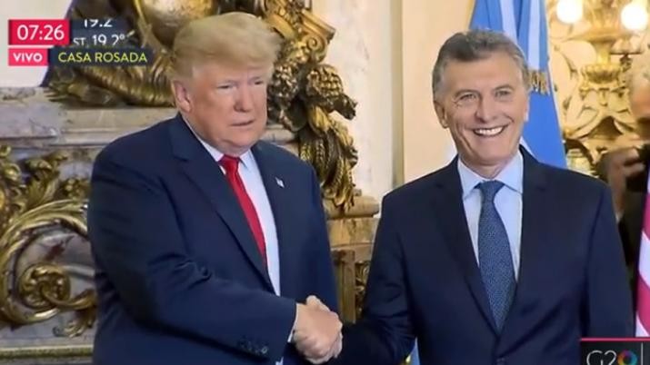 El presidente Mauricio Macri recibió a su par de Estados Unidos, Donald Trump, a quien le agradeció "el apoyo" que le dio a la Argentina "en momentos difíciles", en referencia al respaldo para que el país acceda al crédito que le otorgó el Fondo Monetario Internacional (FMI) por u$s 56.300 millones.