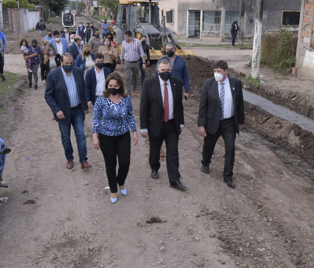 Osvaldo Jaldo, vicegobernador de la provincia, junto al presidente subrogante de la H. Legislatura, Regino Amado, acompañaron al intendente Aldo Salomón y la legisladora Graciela Gutiérrez a recorrer obras de urbanización que se realizan en barrio Santa Inés, que comprenden cordón cuneta y pavimento articulado, mejorando dicha zona y también a otros barrios como Rincón del Este, CGT y Los Alamos.