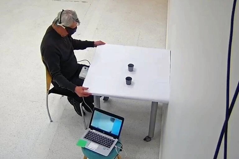 Cuando la pandemia disminuyó en Francia durante el verano, los científicos lograron llevarlo a su laboratorio para recibir más capacitación y pruebas. Descubrieron que podía extender la mano y tocar un cuaderno que estaba sobre una mesa, pero tuvo menos suerte con una caja más pequeña de grapas. Cuando los científicos colocaron dos o tres vasos frente al voluntario, logró contarlos correctamente 12 de 19 veces.