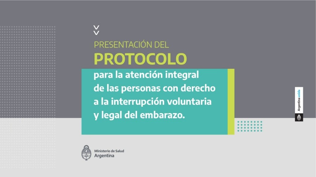 El Ministerio de Salud argentino presentó este viernes el protocolo destinado a los equipos y establecimientos de salud que busca "facilitar el trabajo" y "favorecer el acceso" a la interrupción legal del embarazo (ILE), la Interrupción Voluntaria del Embarazo (IVE) y la atención posaborto.