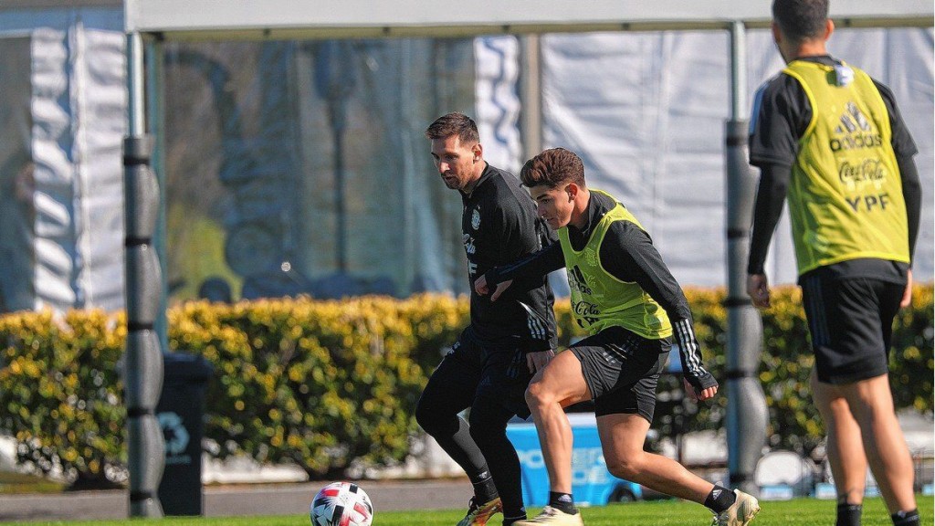 Lo que sorprendió este martes es el equipo que paró el entrenador, Lionel Scaloni, en la práctica. En el arco hay una lucha mano a mano y muy pareja entre Franco Armani y Emiliano Martínez. Ayer atajaron un rato cada uno y hoy podría definirse quién se queda con el puesto en la práctica vespertina.
