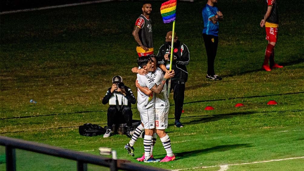 En su camiseta, Vasco da Gama reemplazó la tradicional banda negra que cruza todo el torso de frente por una con los colores del arco iris, en otro gesto de apoyo a la comunidad