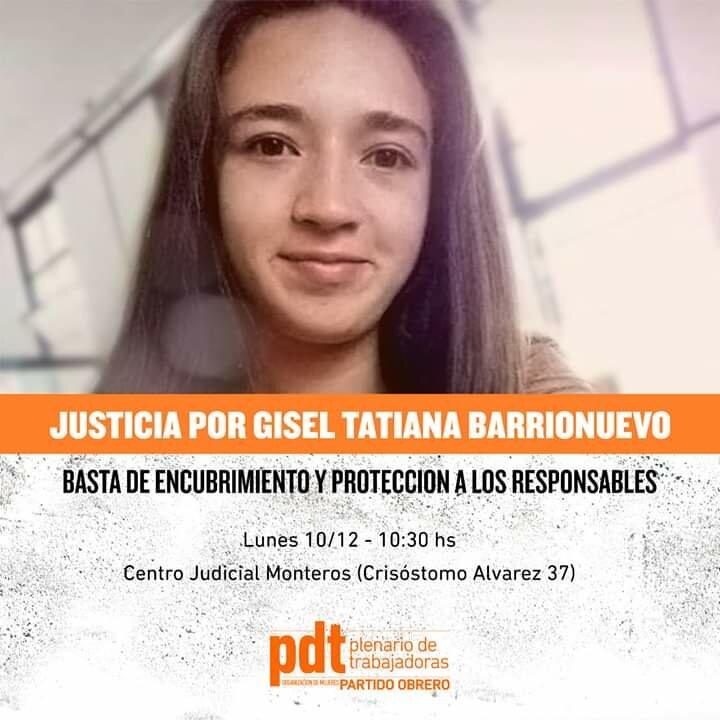 Este lunes, a partir de las 10.30, realizarán una concentración frente al Centro Judicial de Monteros (Crisóstomo Álvarez 37) para exigir Justicia por Gisell Tatiana Barrionuevo.
