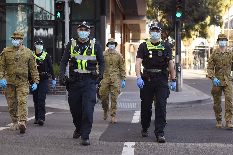 El gobierno de Australia sacó a las calles de la ciudad capital a unos 300 militares para que se cumplan las restricciones impuestas frente a la nueva ola de covid-19 provocada por la variante Delta, que llegó a varias ciudades. Los uniformados se sumaron a la policía en tareas de controles por, al menos, seis semanas.