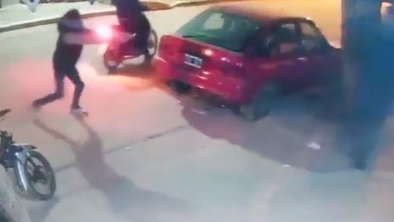 En las cámaras de seguridad las imágenes reflejan el mal momento que pasó la víctima, en un barrio del sur Tucumán Santa Ana un delincuente intento robar a un cadete su moto, la víctima se resistió al asalto, en un momento un vecino reacciono contra el delincuente poniendo en peligro la vida, hubo varios disparos por parte del delincuente no impactando a nadie.