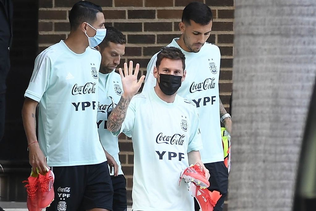 Tras la victoria ante Venezuela, los jugadores le pusieron mucha onda arriba del avión y arribaron a San Pablo, donde continuarán con la concentración. La imagen de Lionel Messi bajando del micro luego de la criminal patada que recibió en Caracas