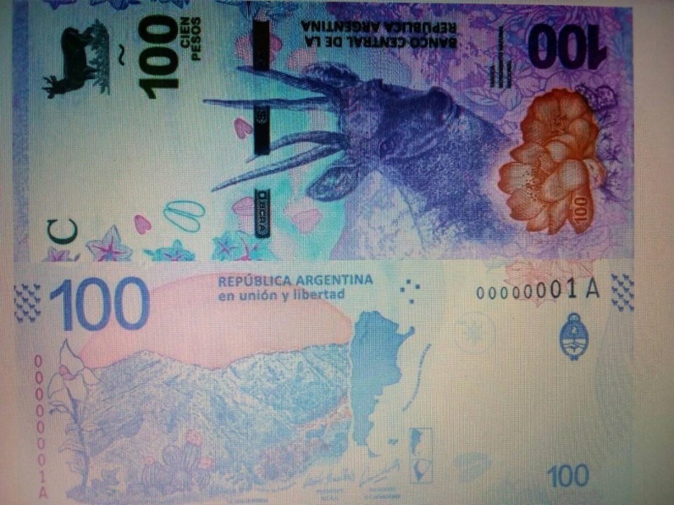 El Banco Central de la República Argentina, BCRA, anunció que apartir del miércoles 19 de diciembre, los billetes de cien pesos con la imagen de la taruca, un ciervo autóctono que constituye un emblema del noroeste argentino.