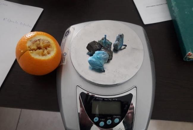 “Este jueves cerca de las 13.30, una mujer de 63 años llevó comida para su hijo de 24 años de edad que se encuentra detenido por robo agravado. Al revisar la comida, como se hace siempre, descubrimos que la naranja estaba pegada y adentro tenía cinco envoltorios de los cuales uno tenía pastillas y los otros, marihuana”, detalló el Comisario Principal Rufino Medina, Jefe de la dependencia.